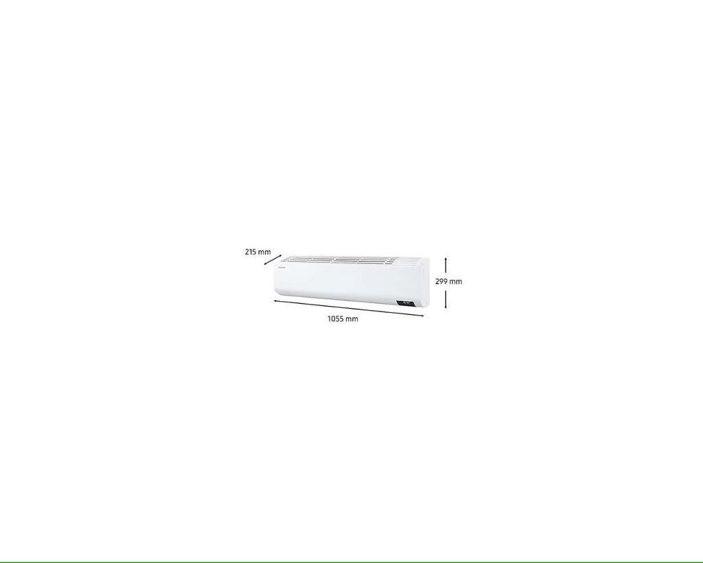 Dimensiones de la unidad interior: 1.055 mm (An) x 299 mm (Al) x 215 mm (Prof).