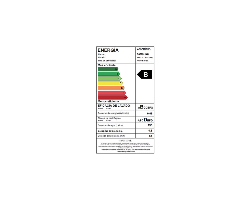 • Niveles de ruido: 63 dB en lavado, 71 dB en centrifugado