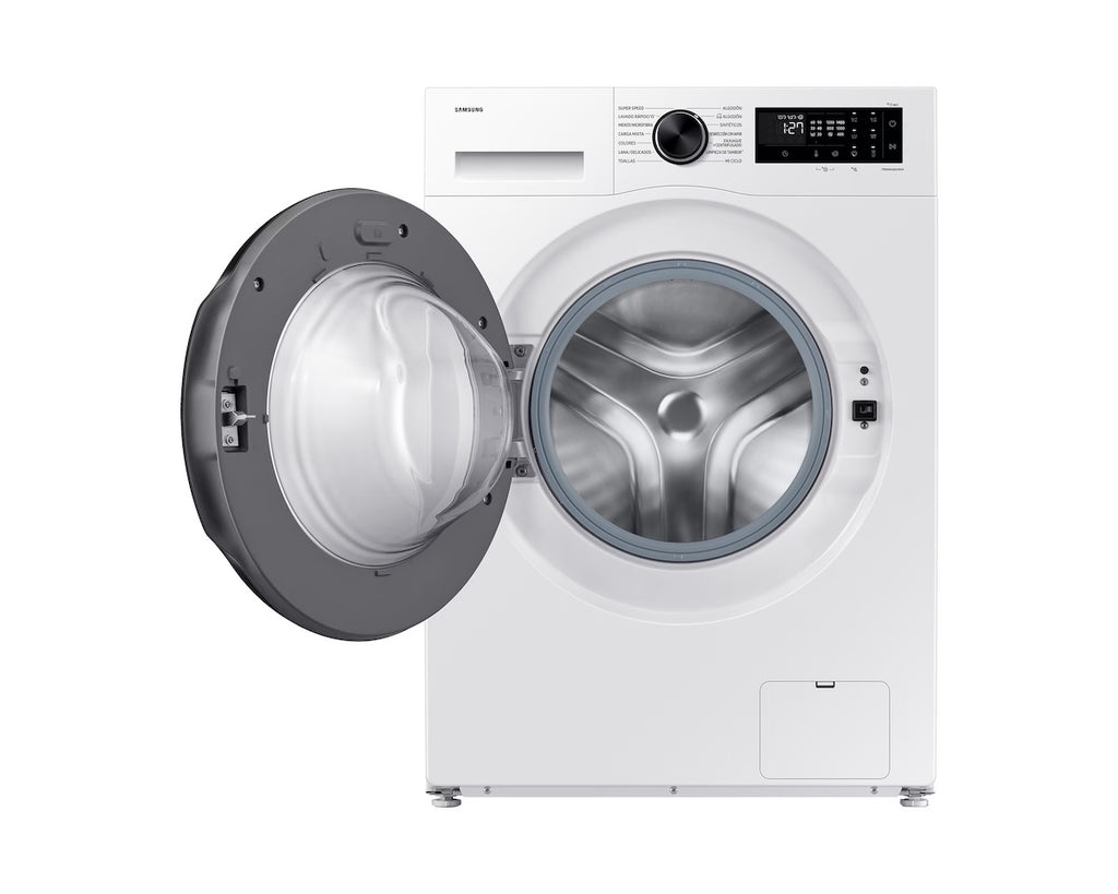 La Samsung WW10DG5U34AEZS es una lavadora de carga frontal diseñada para combinar alto rendimiento, eficiencia energética y cuidado avanzado de las prendas. Con capacidad para 10,5 kg, es ideal para familias de tamaño mediano a grande que necesitan lavar cargas completas sin sacrificar calidad ni ahorro.