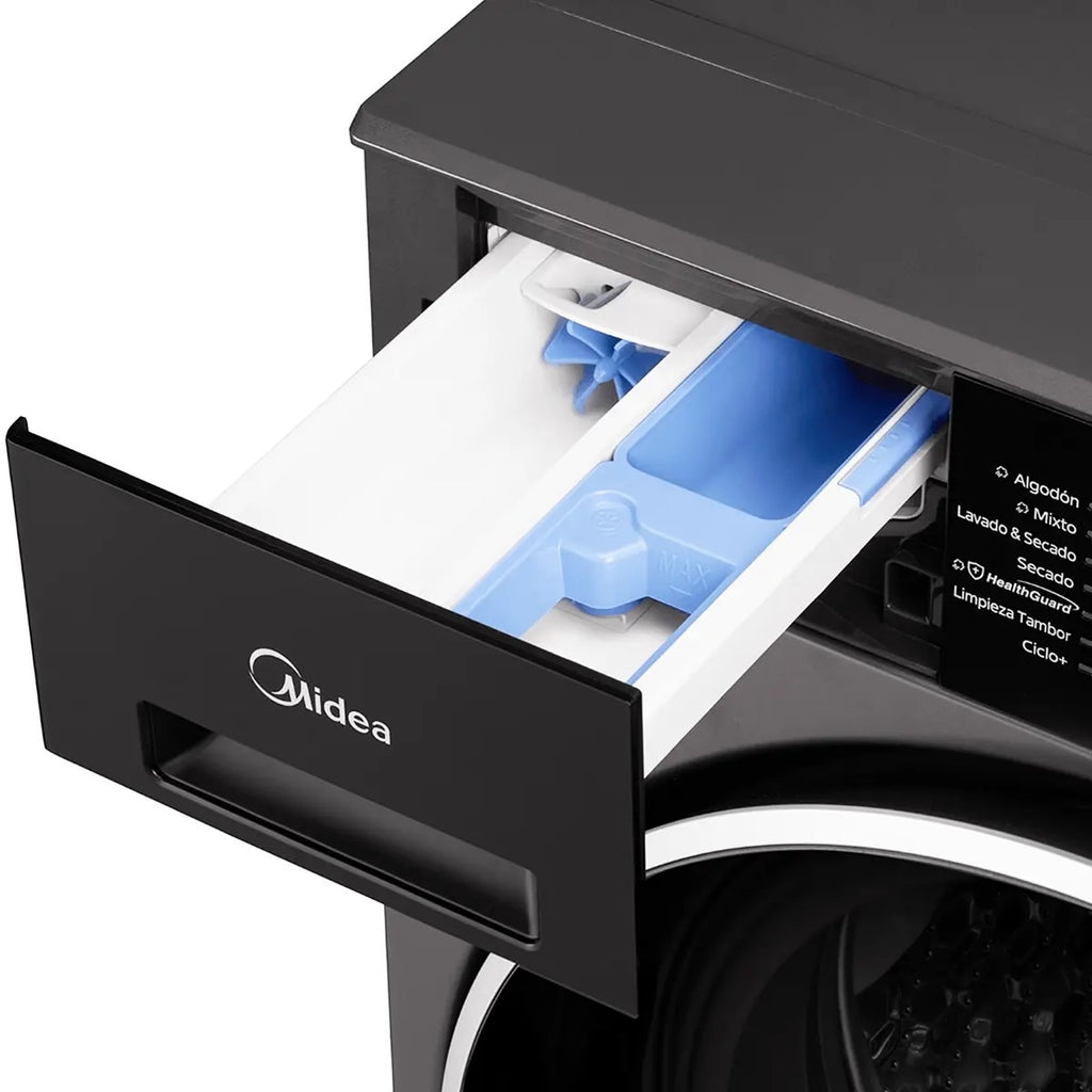 La Midea MF210D120WB-T es una lavadora – secadora 2 en 1 de alto rendimiento, diseñada para ofrecer comodidad, eficiencia y tecnología avanzada en un solo equipo. Su capacidad de lavado de 12 kg y secado de 10 kg la convierte en la opción ideal para familias medianas o grandes que buscan optimizar espacio sin renunciar a la potencia de lavado.