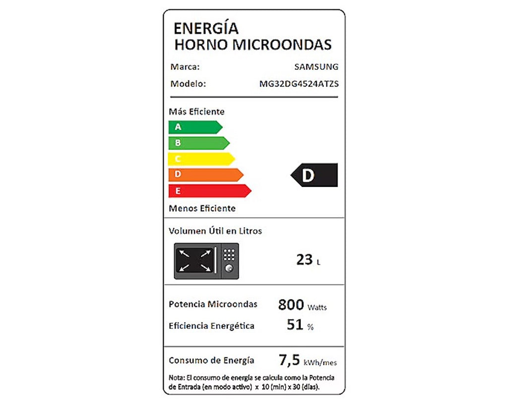 - Funciones: Grill, Power Defrost, Auto Cook, Mantener Caliente