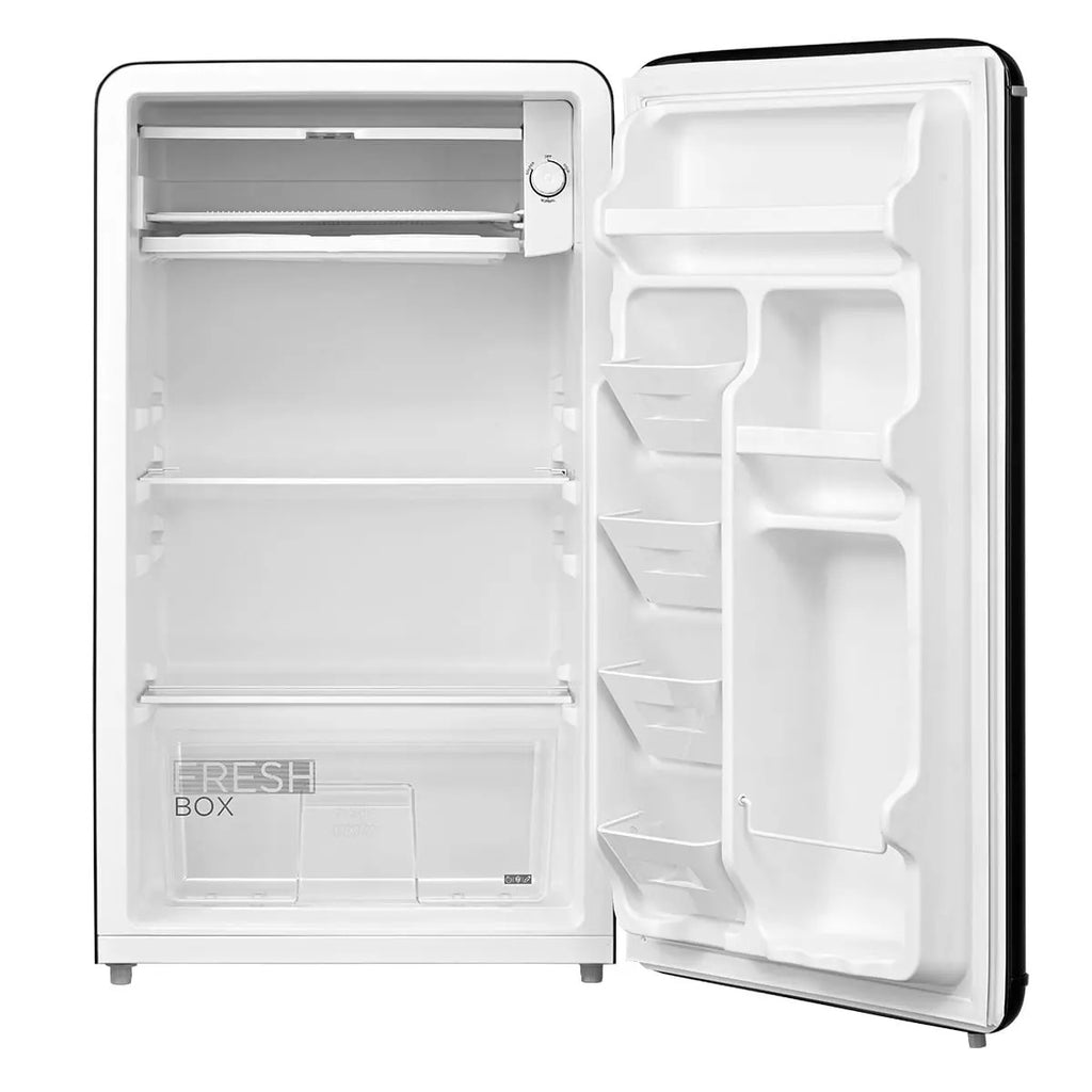 Presentamos el frigobar Midea MDRD142FGE30S (93 litros) — una solución compacta, eficiente y con estilo para espacios reducidos como oficinas, departamentos, dormitorios o zonas de ocio. Su diseño en color negro se integra fácilmente con ambientes modernos, y cuenta con tecnología de “frío directo” que mantiene tus alimentos y bebidas frescos sin complicaciones.