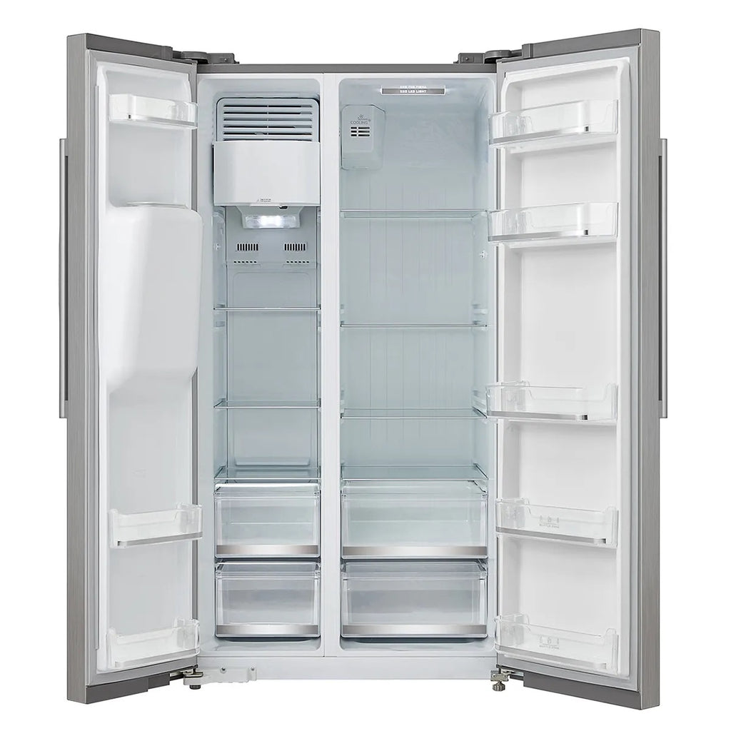 Diseño Side by Side: Ofrece un fácil acceso a los alimentos y un amplio espacio de almacenamiento tanto en el refrigerador como en el congelador.